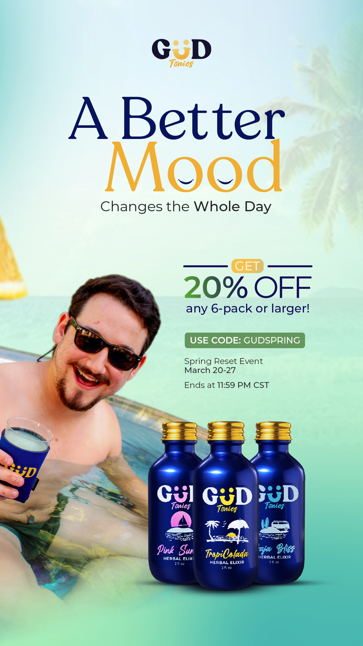 GÜD Tonics has been exactly what I was looking for. It tastes incredible, puts me in a great mood, and I’ve felt so much healthier since making the switch