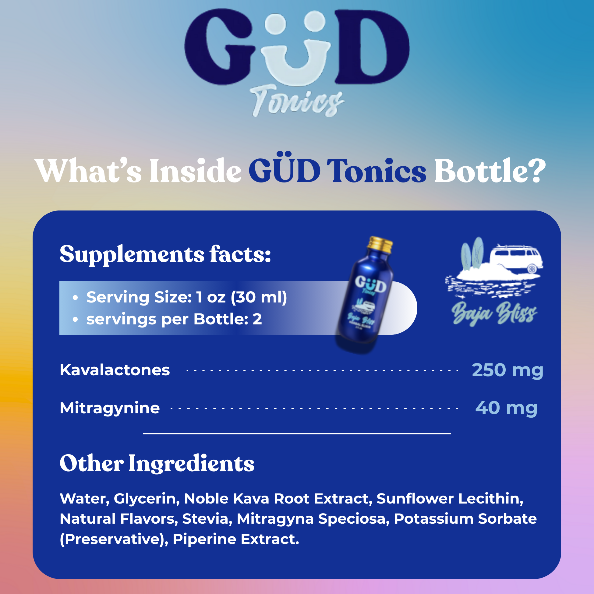 Baja Bliss is the latest addition to the GÜD Tonics family, offering a refreshing twist on your favorite herbal elixir. Inspired by the carefree vibe of the California coast, this blend combines the invigorating taste of lime with subtle tropical notes for a flavor that feels like an endless summer.